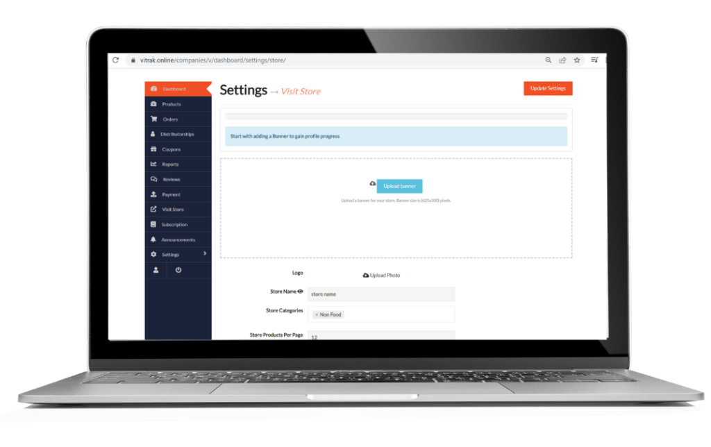 2. After registering, fill in your store details by going to Dashboard→Settings. This is important as distributors will view your details on the basis of what you update here.
