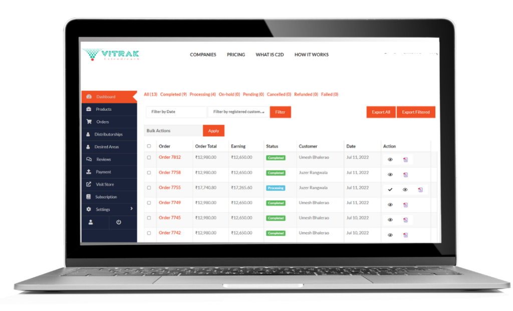 3. Next you can upload your products by going to Dashboard→Products or click on the link below. https://vitrak.online/companies/v/dashboard/new-product/ Uploading products is very important since distributors will approach on the basis of the product portfolio. Once you are done uploading products, you are now visible to all distributors on the website.